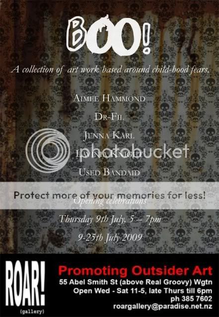 On the 9th of July 2009 BOO an exhibition based on Childhood Fears will open. It will close on the 25th of July 2009 so make sure you get in and have a look see! Here is a flyer to print out if you so desire. You could hand them out to other kids or stick them to Llamas and such.